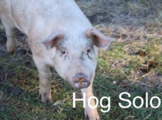 Hog Solo is an intelligent, happy guy. He and the three other big boys are Yorkshires, a breed of pig that’s been selectively bred and genetically manipulated to have accelerated growth rates so farmers can slaughter them at just six months of age. This genetic manipulation makes them prone to cancer, especially skin cancer. We noticed an odd spot on Solo’s neck, and our vet determined it was squamous cell carcinoma. Sadly, his prognosis is not good.