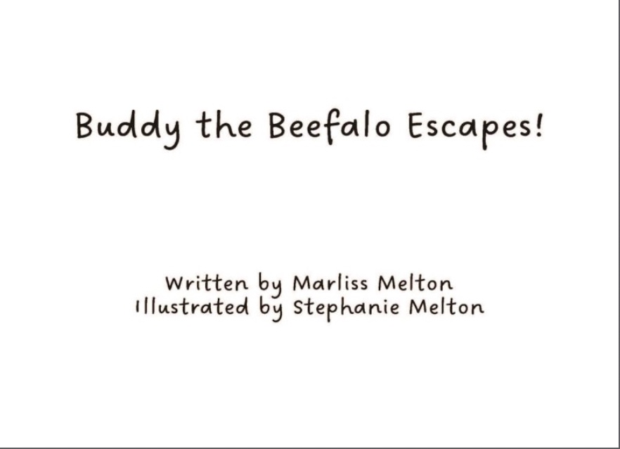 The true story of Critter Creek’s Beefalo, Buddy. Written by Marliss Melton and illustrated by Stephanie Melton.